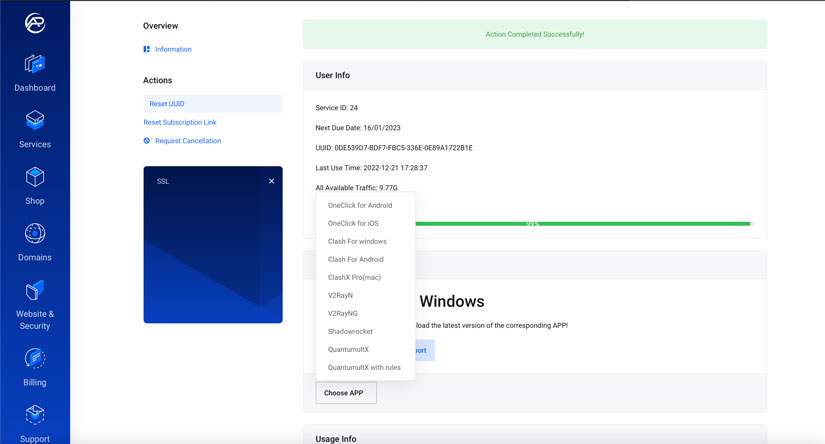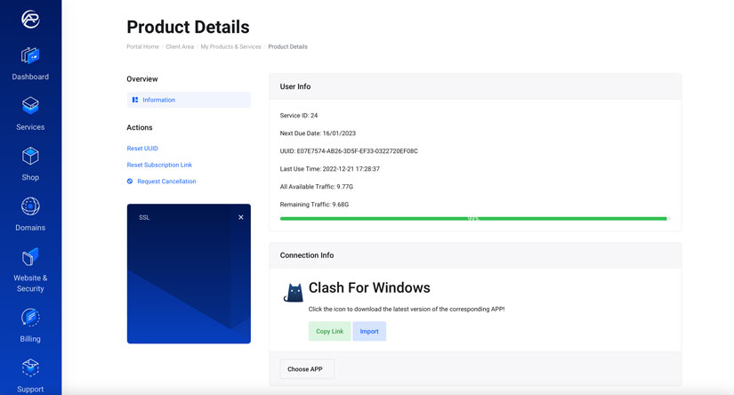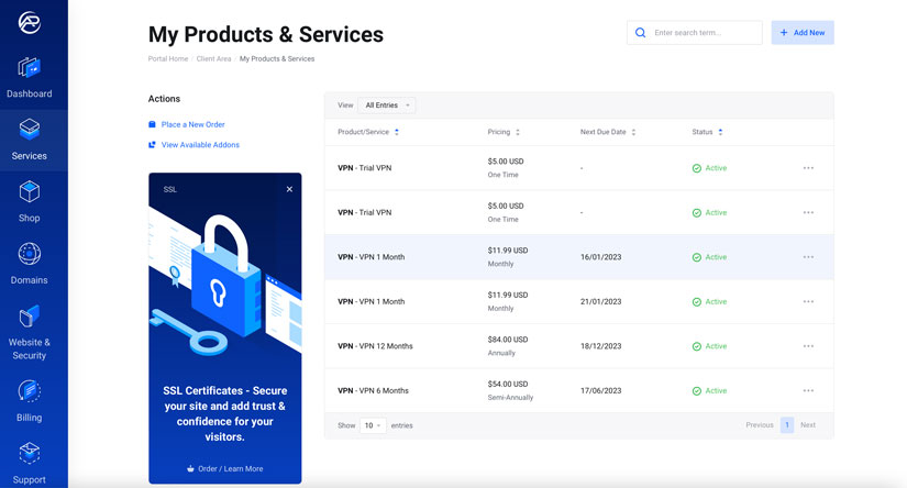 1. From the My Product & Services menu on the Left of the control panel, Click VPN.